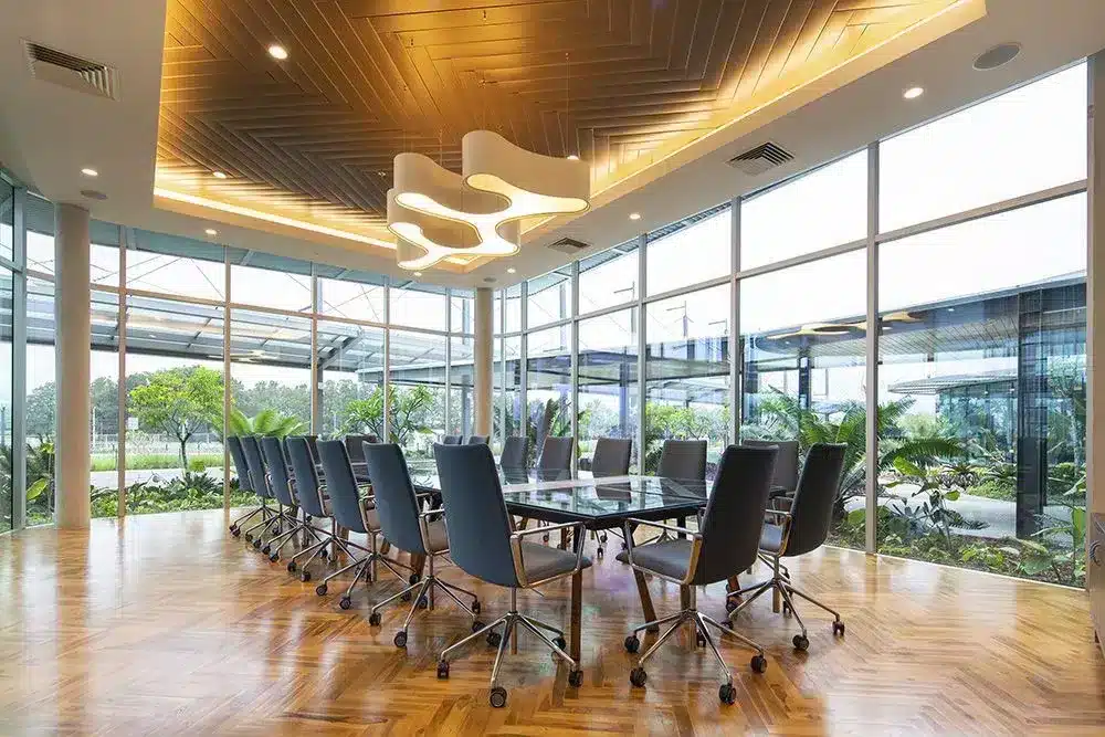 Material para arbustos, divisible en seis partes, ideal para pequeños grupos de trabajo. Es perfecta para reuniones ejecutivas de hasta 55 personas. Todas las salas están equipadas con la última tecnología en iluminación y proyección audiovisual.