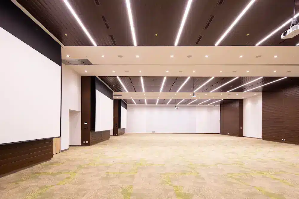 El diseño sostenible y moderno se apodera de todas nuestras salas, y por supuesto la Sala Central forma parte de nuestros espacios ideales para el desarrollo de eventos. Equipada con tecnología de última generación y con capacidad para 1.360 invitados, esta sala nos permite dividir el espacio en 3 zonas y, al mismo tiempo, aislar acústicamente una sala de la otra.